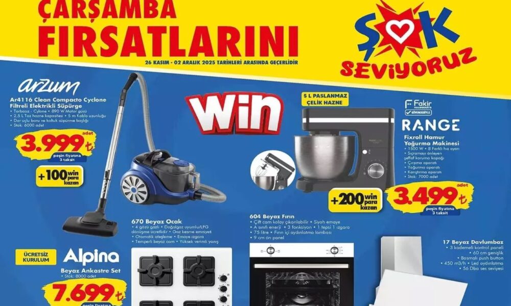 26 Kasım 2025 Çarşamba günü ŞOK market rafları ev, mutfak ve elektronik ürünlerde büyük fırsatlarla dolacak. Hafta boyunca geçerli olacak kampanyanın yıldız ürünü ise kapaklı Borcam...